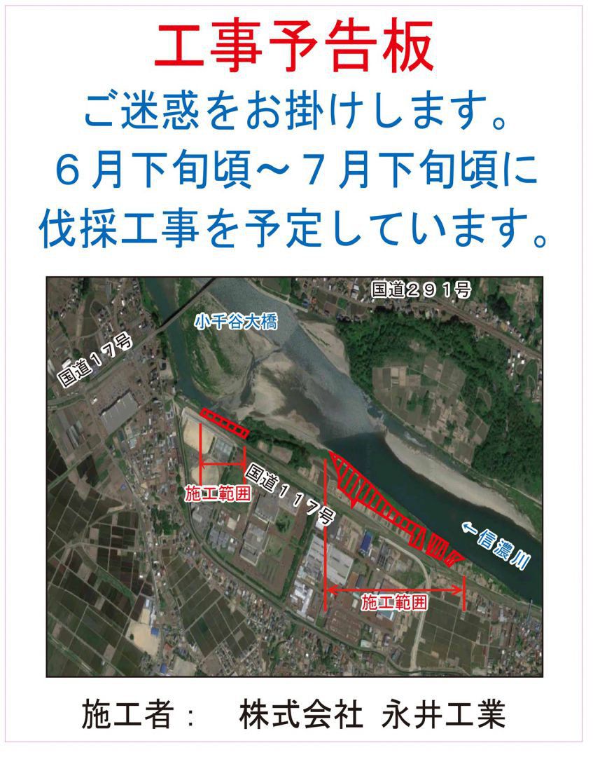 【工事のお知らせ】小千谷市、長岡市にて信濃川河川敷の樹木伐採と護岸工事を行います